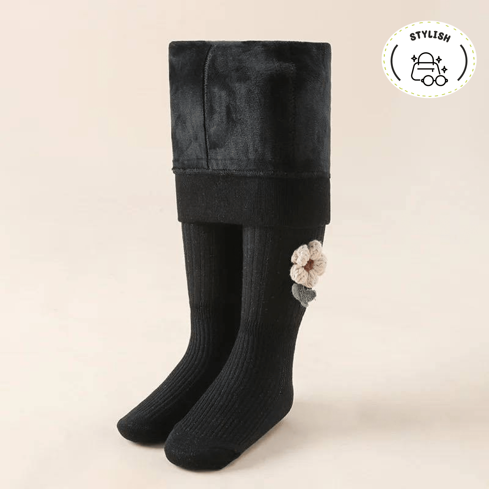 Thick, soft fleece stockings for chilly days. Keeps little legs warm whether indoors or out in the snow.