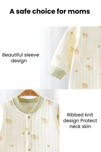 Keep your baby cozy and cute with the Little Elephant Cuddles Romper – soft fabric, adorable elephant prints, and all-day comfort for play, sleep, and snuggles.