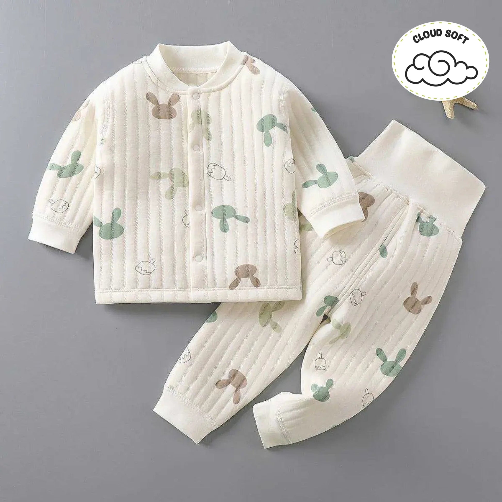 Cute bunny print and cozy fit make this sleepwear a nighttime favorite. Gentle fabric soothes your baby into a good night’s sleep.